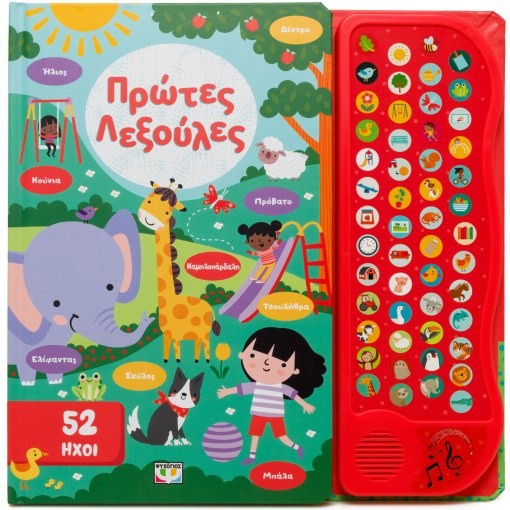 Με υπέροχες εικόνες από οικείους χώρους, όπως η παιδική χαρά, το σπίτι και ο κήπος, και 52 ηχογραφημένες λέξεις, αυτό το διαδραστικό βιβλίο θα ενθουσιάσει τα μικρά παιδιά, που θα εμπλουτίσουν το λεξιλόγιό τους διασκεδάζοντας!