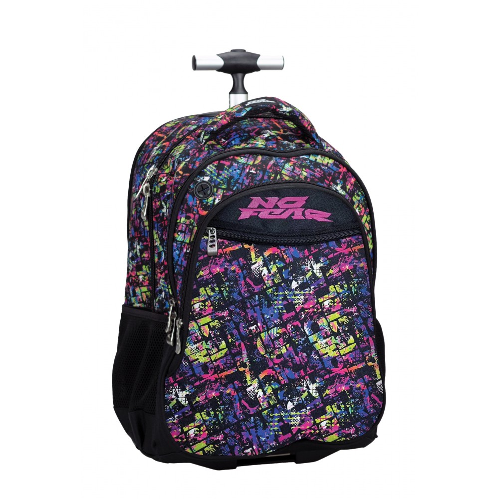 Δύο κεντρικές θέσεις και μία επιπλέον μπροστινή Μία μπροστινή τσέπη για μικροπράγματα Ενισχυμένος μονός μηχανισμός μεταφοράς με 2 θέσεις προσαρμογής Ενισχυμένοι ιμάντες πλάτης που κρύβονται σε ειδική θήκη με φερμουάρ όταν η τσάντα χρησιμοποιείται σαν τρόλεϊ Πλαϊνές θήκες για παγούρια Προστασία για τα ροδάκια όταν η τσάντα χρησιμοποιείται σαν σακίδιο Επένδυση με φόδρα Διακοσμητικό μπρελόκ Διαστάσεις: 48(+5)Χ33(2+2)Χ28 Χωρητικότητα: 30lt
