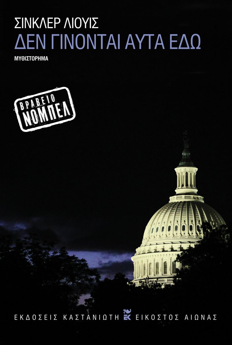 Αυτό το βιβλίο του Σίνκλερ Λιούις είναι μια λογοτεχνική προειδοποίηση για την εύθραυστη φύση της δημοκρατίας. Ο Αμερικανός συγγραφέας περιγράφει πώς ο ολοκληρωτισμός θα μπορούσε να κυριαρχήσει στις Ηνωμένες Πολιτείες. Η ματιά του είναι διαπεραστική και διορατική, ικανή να προκαλέσει την αγωνία και στον σημερινό αναγνώστη. Οι βασικοί πρωταγωνιστές είναι ένας μαχητικός δημοσιογράφος, ο Ντορέμους Τζέσαπ, και ο γερουσιαστής Μπαζ Γουίντριπ, ένας δημαγωγός που καταφέρνει να εγκαθιδρύσει στη γη της ελευθερίας ένα φασιστικό καθεστώς, ένα σύστημα εξουσίας βασισμένο στη βία και την τρομοκρατία. Το μυθιστόρημα Δεν γίνονται αυτά εδώ είναι μια έξοχη πολιτική σάτιρα η οποία μετεξελίσσεται σε μια μεγάλη δυστοπία: ένας εκλεγμένος πρόεδρος μετατρέπεται σε δικτάτορα για να σώσει το έθνος από την απάτη της κοινωνικής πρόνοιας, την εγκληματικότητα, το σεξ και τον φιλελευθερισμό. Το βιβλίο γράφτηκε στη διάρκεια του Μεσοπολέμου, την περίοδο που οι ΗΠΑ βυθίζονταν στην οικονομική ανασφάλεια και στην Ευρώπη αναδυόταν το ναζιστικό σκότος. Ένα έργο φοβερό, ανατριχιαστικά επίκαιρο. Το 1930 η Σουηδική Ακαδημία απένειμε το Βραβείο Νόμπελ Λογοτεχνίας στον Σίνκλερ Λιούις «για τη σφριγηλή και γλαφυρή τέχνη των περιγραφών του και την ικανότητά του να δημιουργεί, με σύνεση και έξυπνο χιούμορ, νέους τύπους χαρακτήρων».