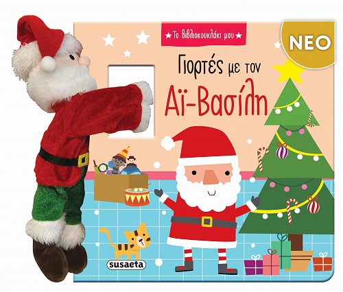 Πάμε μια βόλτα στο σπίτι και στο εργαστήρι του Αϊ-Βασίλη, για να δούμε από κοντά τις ετοιμασίες για την Πρωτοχρονιά! Ένα γιορτινό διαδραστικό βιβλίο με δώρο ένα κουκλάκι Αϊ-Βασίλη που τυλίγεται γύρω από τον καρπό σου!