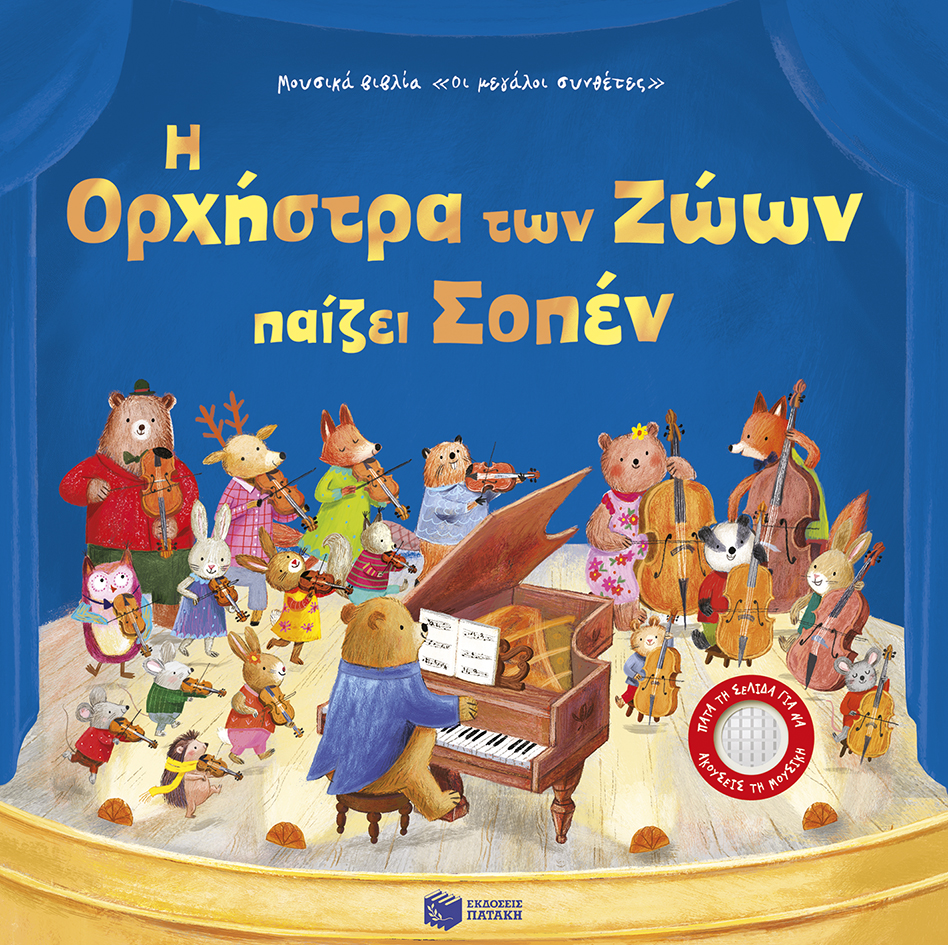 Ανακαλύψτε τη μαγεία της μουσικής του Σοπέν πατώντας τα κουμπιά σε αυτό το υπέροχο εικονογραφημένο βιβλίο. Η Oρχήστρα των Ζώων συστήνει στα μικρά παιδιά έναν από τους μεγαλύτερους συνθέτες όλων των εποχών. Εδώ και χρόνια οι Εκδόσεις Πατάκη πρωτοπορούν στην κατηγορία των ηχητικών βιβλίων με μια μεγάλη συλλογή διαλεγμένη με φροντίδα για τα πρώτα βήματα των παιδιών σας στο διάβασμα και στη μουσική. Βιβλία που βοηθούν τα παιδιά να ξεδιπλώσουν τα συναισθήματα αλλά και τα ταλέντα τους.
