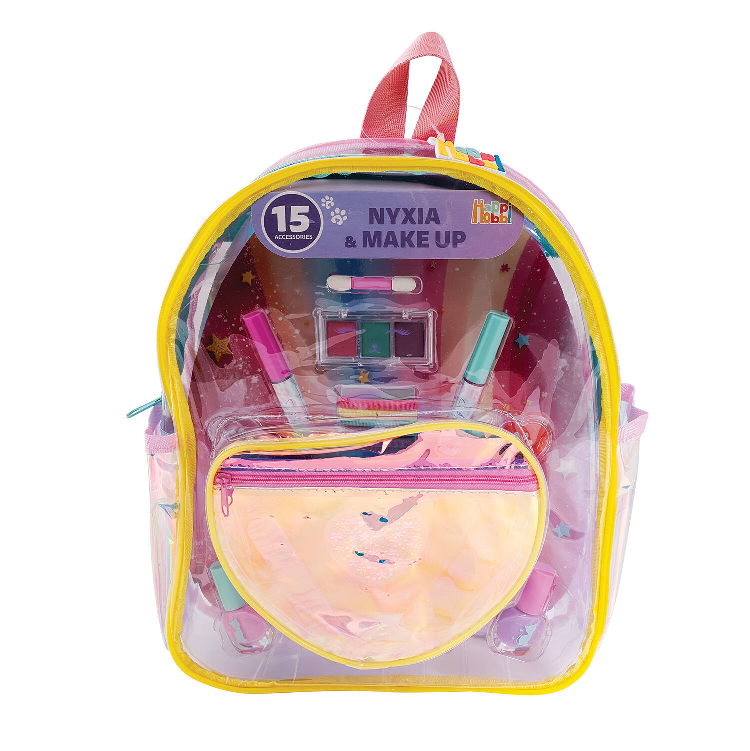 Δημιούργησε το δικό σου μοναδικό beauty look, πειραματίσου με χρώματα και ατέλειωτη φαντασία με το μοδάτο fashion backpack που περιέχει 15 μοναδικά αξεσουάρ για νύχια & make up Περιέχει - 2 lip gloss - 1 παλέτα σκιών (3 χρωμάτων) - 1 πινελάκι - 2 lip balms - 2 μανό - 1 λίμα - 1 διαχωριστικό δαχτύλων - 5 λαστιχάκια μαλλιών - Αυτοκόλλητα νυχιών