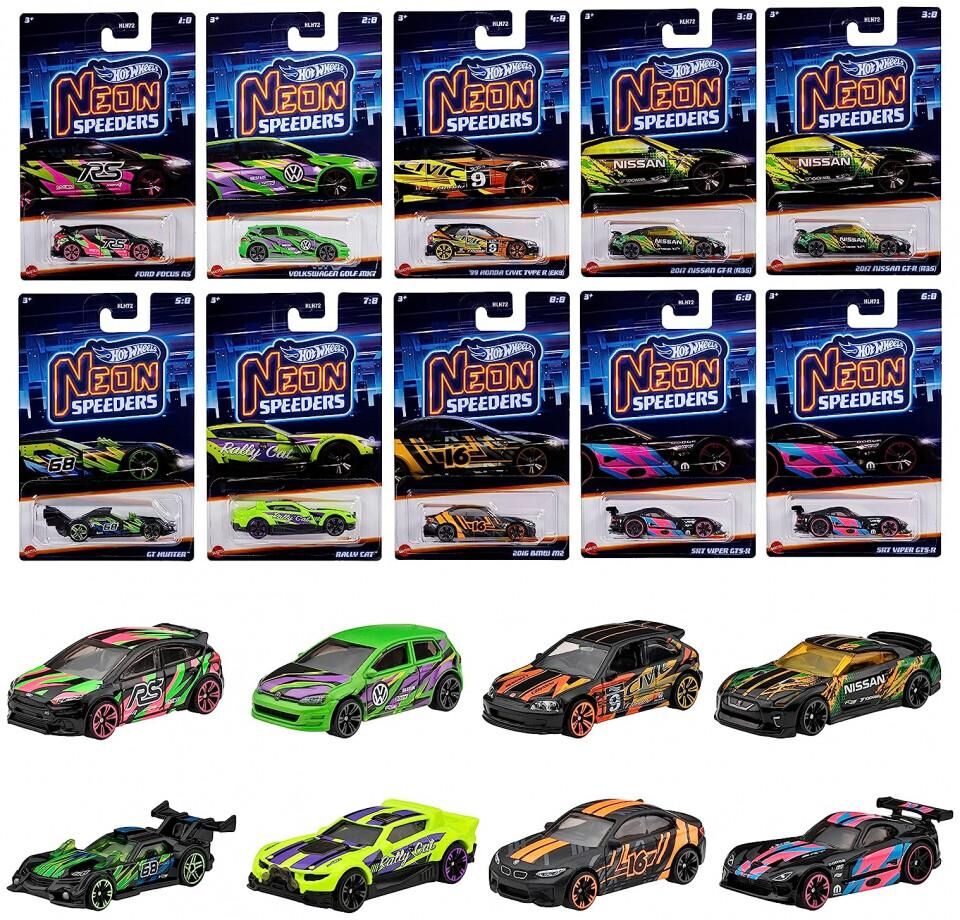 Τα Hot Wheels Neon Speeders χαρίζουν έναν νέο αέρα στα μεταλλικά αυτοκινητάκια με εντυπωσιακά σχέδια και χρώματα που ξεχωρίζουν. Κάθε αυτοκινητάκι κλίμακας 1:64 έχει αποκλειστικές ρόδες, καλύπτεται με πολλά σχέδια και διατίθεται σε ειδική συσκευασία για συλλογή. Με μια ποικιλία νέων μοντέρνων σχεδίων, τα παιδιά και οι συλλέκτες θα θέλουν να τα συλλέξουν όλα! Κάθε αυτοκινητάκι πωλείται ξεχωριστά, ανάλογα με τη διαθεσιμότητα. Τα χρώματα και τα σχέδια μπορεί να διαφέρουν. Η τιμή αφορά το ένα τεμάχιο και η επιλογή γίνεται τυχαία.