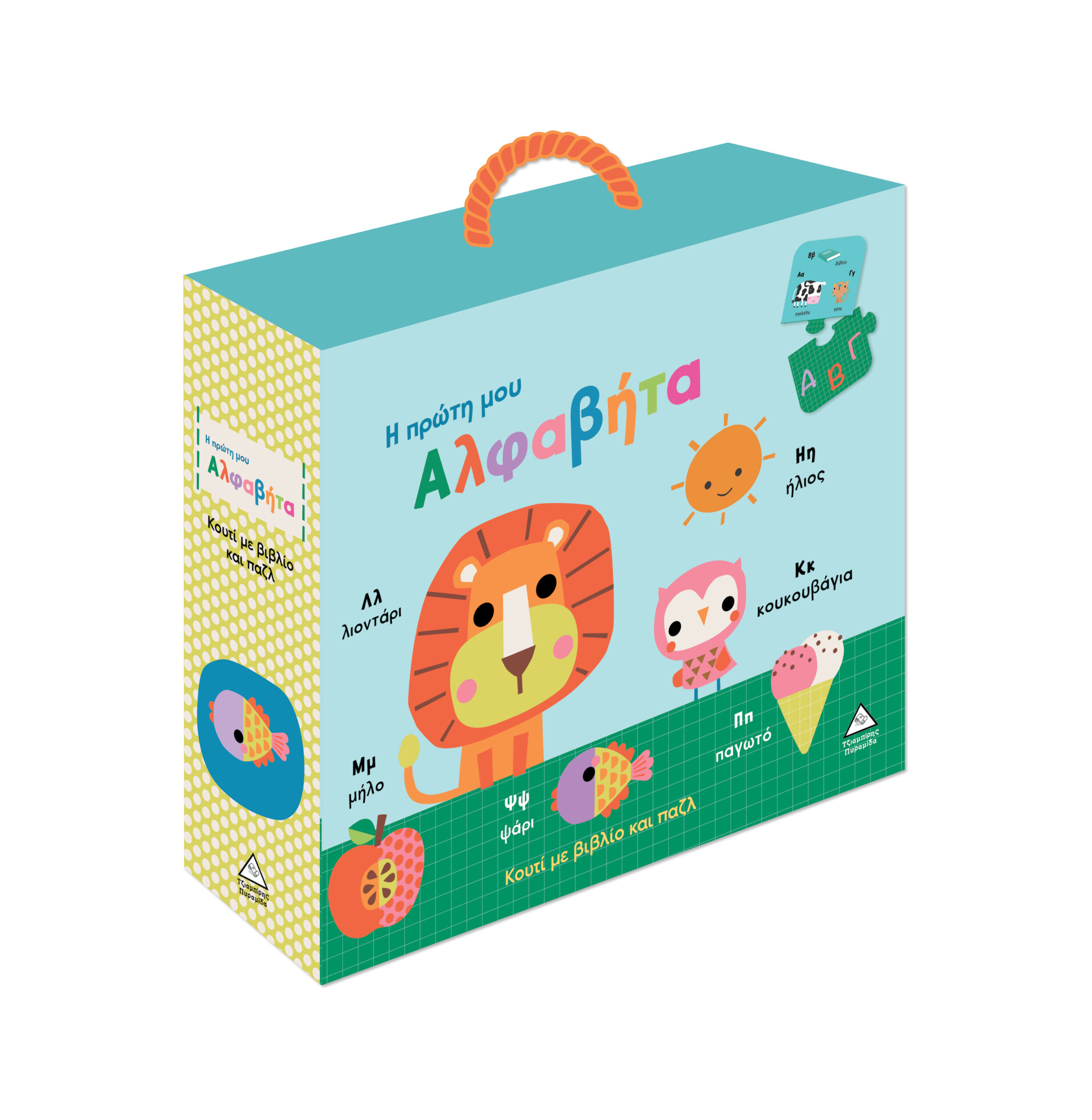Αυτό το μοναδικό κουτί περιέχει ένα υπέροχο βιβλίο και ένα εκπαιδευτικό παζλ που βοηθάει τα παιδιά να μάθουν την αλφαβήτα με τον πιο διασκεδαστικό τρόπο. Τα παιδιά καλούνται να βρουν και να ενώσουν τα σωστά κομμάτια, δημιουργώντας έτσι ένα νοηματικό παζλ που καλλιεργεί τη συγκέντρωση, την υπομονή και την παρατηρητικότητα ενώ ταυτόχρονα συμβάλλει στην ανάπτυξη της λεπτής κινητικότητας.