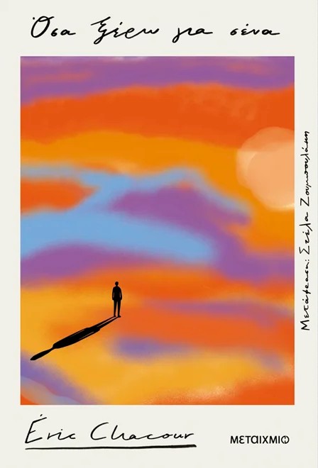 Στο Κάιρο της δεκαετίας του ογδόντα, ένας νέος γιατρός κάνει τη ζωή που όλοι περιμένουν από κείνον. Θα ακολουθήσει το επάγγελμα του πατέρα του, θα κληρονομήσει το ιατρείο του και την πελατεία του, θα κάνει τα πράγματα που πρέπει. Ο Ταρέκ δεν έχει χρόνο για σκέψεις και ερωτήματα. Μια τυχαία συνάντηση όμως θα κλονίσει τον γάμο του, την καριέρα του, ακόμα και τις βεβαιότητές του, και θα τον αναγκάσει να φύγει. Από τη λεβαντίνικη κοινότητα της Αιγύπτου στους σκληρούς χειμώνες του Μόντρεαλ, από την ηγεμονία του Νάσερ στην αυγή ενός νέου αιώνα, ο Ταρέκ φεύγει, περιπλανιέται και αναπολεί. Συνειδητοποιεί όμως ότι χιλιάδες μίλια μακριά, κάποιος συγκεντρώνει τα κεφάλαια της ιστορίας του και προσπαθεί να ανασυνθέσει, κομμάτι κομμάτι, την πορεία της ζωής του. Ιστορία μιας απουσίας και μιας πιθανής συμφιλίωσης, το Όσα ξέρω για σένα σκιαγραφεί το τρυφερό πορτρέτο μιας οικογένειας και μιας κοινωνίας που μεταμορφώνεται δραστικά. Το πρώτο μυθιστόρημα του Eric Chacour αποκαλύπτει έναν συγγραφέα με εκλεπτυσμένη γλώσσα, ευαισθησία και βαθιά κατανόηση της ανθρώπινης φύσης.