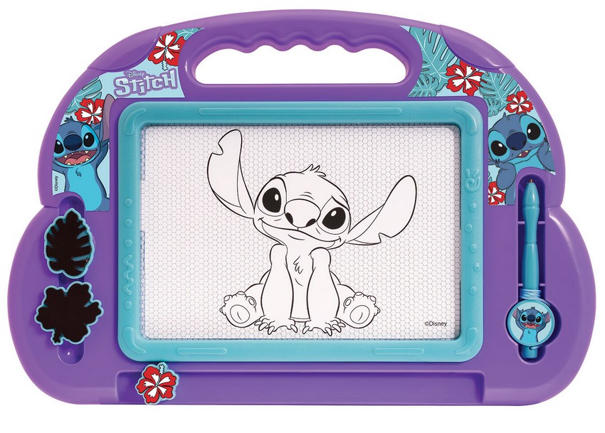 Ζωγράφισε αμέτρητα σχέδια όπου κι αν βρίσκεσαι με τον Πίνακα Γράψε - Σβήσε Stitch. Ένας καμβάς, μια μαγική σβήστρα, ένα μαγνητικό στυλό με κορδόνι για να μην χάνεται και δύο σφραγίδες δίνουν την ευκαιρία στο παιδί να γράφει και να σβήνει αμέτρητες φορές.