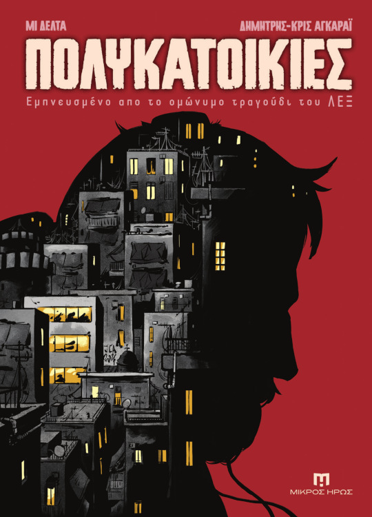 Στη Θεσσαλονίκη της κρίσης, ο Δήμος δέχεται ένα περίεργο τηλεφώνημα για να επισκεφτεί τον πατέρα του με τον οποίο έχει διακόψει επαφές εδώ και χρόνια. Κατά τη διάρκεια της επίσκεψης αυτής, μυστικά και ενοχές χρόνων έρχονται στην επιφάνεια και ο Δήμος παρουσιάζει όσα έζησε τα χρόνια που η σχέση τους είχε διακοπεί κάνοντας μια βόλτα στο αστικό τοπίο. Εκεί που λερώνεις τα χέρια σου είτε το θέλεις είτε όχι. Η βόλτα αυτή έχει ως μουσική υπόκρουση το τραγούδι Πολυκατοικίες του Λεξ. Ενός τραγουδιού που έδωσε ρυθμό και μελωδία στις δύσκολες νύχτες μιας ολόκληρης γενιάς που ακροβατούσε μεταξύ αφραγκίας και ψυχολογικών αδιεξόδων. Γιατί και οι πολυκατοικίες έχουν ιστορίες να πουν… Το Πολυκατοικίες είναι ένα graphicnovel εμπνευσμένο από το ομώνυμο τραγούδι του ΛΕΞ — μια αφηγηματική κατάδυση στα χρόνια της οικονομικής κρίσης.Με ρυθμό που θυμίζει βιντεοκλίπ και εικόνες που κινούνται ανάμεσα στο ρεαλιστικό και το αφαιρετικό, ο Δήμος ξετυλίγει τη ζωή που έζησε όσο ήταν μακριά από τον πατέρα του.Το κομμάτι μιας ολόκληρης γενιάς τώρα γίνεται κόμικς από τους Δημήτρη-Κρις Αγκαράι (Σκυλονουάρ, Μιχαήλ Μιχαήλ του Μιχαήλ) και Μι Δέλτα (Νεκρός Χορός, Τερματοφύλακας Γιατρός – Η Ιστορία Συνεχίζεται…).