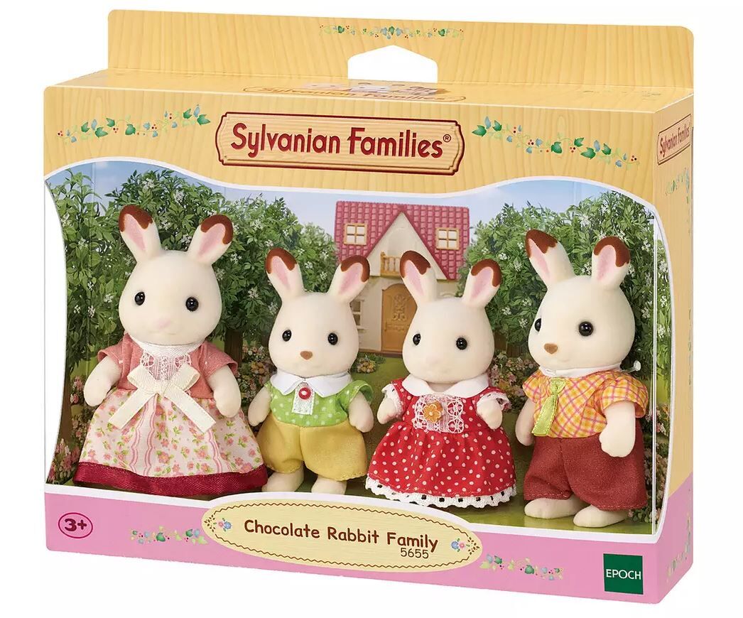 Σετ τεσσάρων φιγούρων: ο μπαμπάς ο Φράσιερ, η μαμά η Τέρι, το κοριτσάκι η Φρέγια και το αγοράκι ο Κόκο. Κάθε φιγούρα έχει σοκολατένιο χρώμα στις άκρες από τα αυτάκια του. Τα χέρια, τα πόδια και τα κεφάλια των φιγούρων μπορούν να μετακινηθούν για να τεθούν σε διαφορετικές στάσεις. Τα ρούχα μπορούν να αφαιρεθούν για να αλλάξουν τα ρούχα των φιγούρων. Συνδυάστε το με το μωράκι Σοκολατένιο Κουνελάκι, τα δίδυμα Σοκολατένια Κουνελάκια, το Σετ Φροντίδας των Τρίδυμων Σοκολατένιων, τη Σειρά Κορίτσι της Πόλης -Σοκολατένιο Κουνελάκι - και τους Παππούδες Σοκολατένια Κουνελάκια (πωλούνται χωριστά) για ένα παιχνίδι γεμάτο φαντασία με όλη την οικογένεια Σοκολατένιο Κουνελάκι.