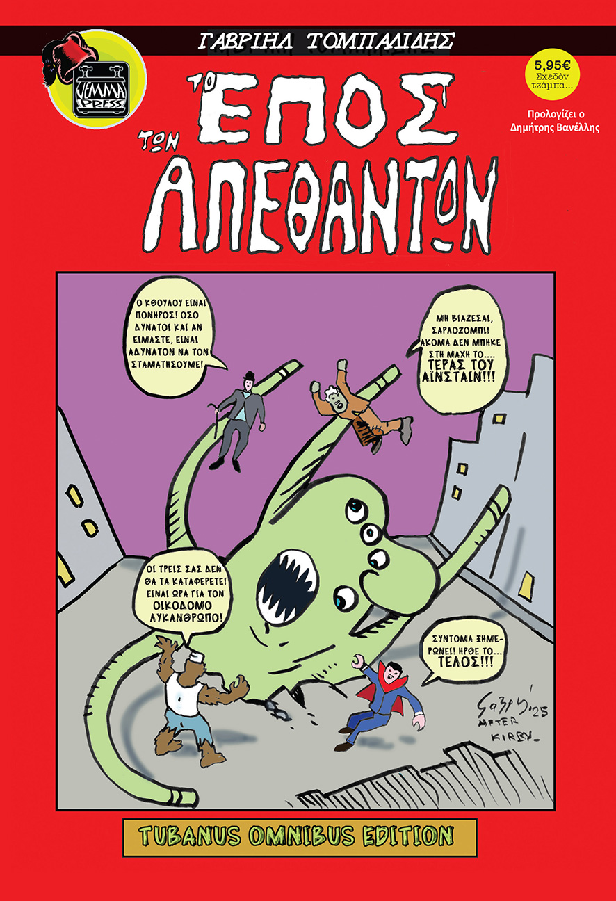 Αυτός ο τόμος συγκεντρώνει τα τρία, πλέον κλασικά και δυσεύρετα, έργα του Γαβριήλ Τομπαλίδη: «Οι 3 Απέθαντοι Μπάσταρδοι», «Το Έπος των Ανελέητων Παλιοτόμαρων» και «Το Πολύσπορο Ζυμάρι από την Κόλαση». Επιπλέον περιλαμβάνει τις ιστορίες: «Χαρούμφ το κεσεδάκι του Χάρου», «Το Σαρλοζόμπι περπατά στη Γη» καθώς και το μονοσέλιδο αριστούργημα «Σέρλοκ Χολμς vs Εραστή της Λαίδης Τσάτερλυ». Αξίζει να σημειωθεί πως ο Γαβριήλ Τομπαλίδης είναι ο μοναδικός δημιουργός που εκδίδεται στην ξεχωριστή σειρά των εκδόσεων μας Jemma Press / Φέσι.
