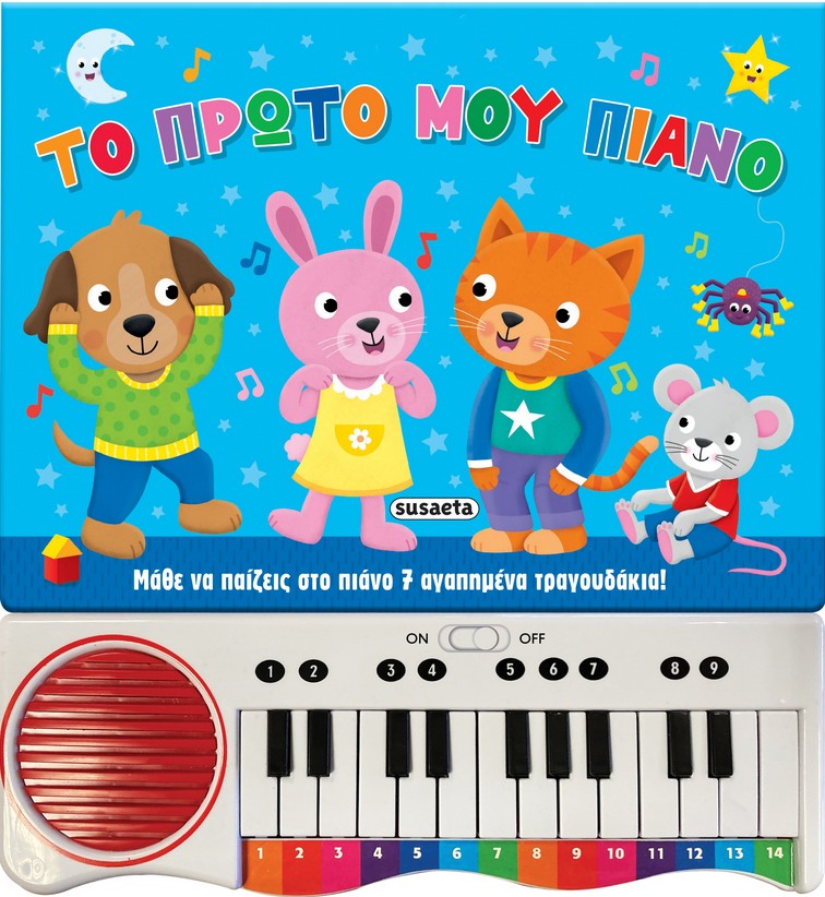Σ’ αυτό το βιβλίο θα βρείτε μια υπέροχη συλλογή από αγαπημένα παιδικά τραγούδια όπως «Φεγγαράκι μου λαμπρό», «Χαρωπά τα δυο μου χέρια», «Η αραχνούλα» και άλλα. Τα παιδιά θα μάθουν εύκολα να παίζουν τις μελωδίες, πατώντας τα πλήκτρα με το χρώμα και τον αριθμό που βλέπουν πάνω από κάθε συλλαβή. Ένα βιβλίο που θα τους προσφέρει δημιουργικές και χαρούμενες στιγμές, αλλά και την απόλαυση ενός σπουδαίου επιτεύγματος, όπως είναι η εκτέλεση ενός τραγουδιού στο πιάνο!