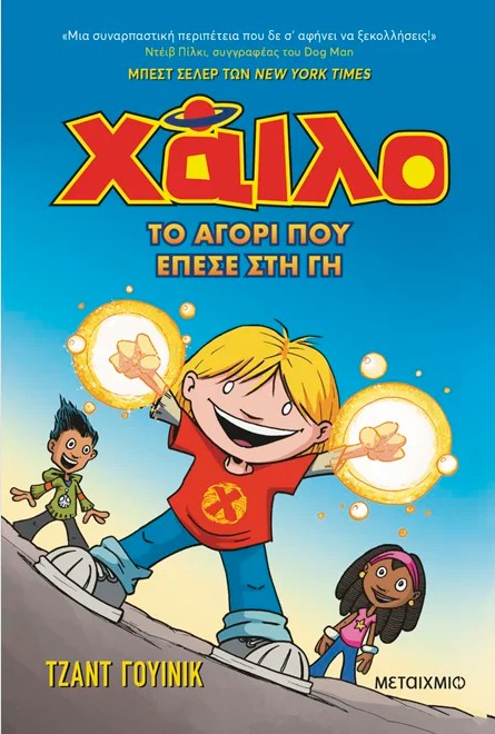 Γνωρίστε τον Χάιλο, τον Ντι Τζέι και την Τζίνα! Ο Ντι Τζέι και η Τζίνα είναι δύο απολύτως συνηθισμένα παιδιά. Ο Χάιλο όμως… όχι! Ο Χάιλο µόλις έπεσε από τον ουρανό και δε γνωρίζει από πού ήρθε ούτε τι δουλειά έχει στη Γη. (Ούτε και γιατί είναι κακή ιδέα να πηγαίνεις σχολείο µόνο µε το βρακί.) Όµως –ουπς– απ’ ό,τι φαίνεται δεν έπεσε μόνο εκείνος στον πλανήτη µας! Θα µπορέσουν οι τρεις τους να λύσουν το µυστήριο που κρύβει το παρελθόν του Χάιλο; Θα καταφέρει ο Χάιλο να επιβιώσει µία ολόκληρη µέρα στο σχολείο; Και είναι ο Ντι Τζέι και η Τζίνα έτοιµοι να σώσουν τον κόσµο; Διάβασε αυτή την επική, ξεκαρδιστική περιπέτεια για να το µάθεις!