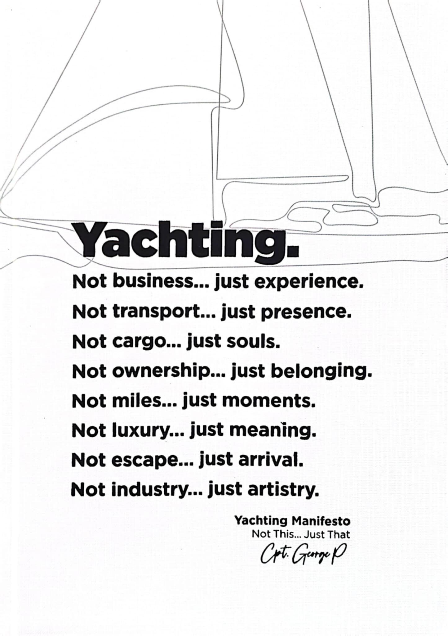 Το Yachting Manifesto είναι ένα βιβλίο που εμφανίζεται σπάνια στην αγορά. Όχι επειδή είναι «διαφορετικό» με τον εύκολο τρόπο, αλλά επειδή έρχεται τη σωστή στιγμή, σε έναν χώρο με παγκόσμιο κοινό, οικονομικό βάθος και έντονη πολιτισμική ταυτότητα....χωρίς όμως μέχρι σήμερα να διαθέτει τη γλώσσα που του αντιστοιχεί. Το βιβλίο δεν γράφτηκε για να εξηγήσει τι είναι το yachting. Γράφτηκε για να δείξει πώς πρέπει να μιλάμε γι’ αυτό από εδώ και πέρα. Η γραφή του κινείται ανάμεσα στη θάλασσα και τη σκέψη. Είναι καθαρή, σύγχρονη, στοχαστική, αλλά ταυτόχρονα άμεση και προσβάσιμη. Δεν κουράζει. Δεν επιδεικνύεται. Δεν εγκλωβίζεται σε τεχνικούς όρους ή σε lifestyle περιγραφές. Αντίθετα έχω προσπαθήσει να δημιουργήσω μια αφήγηση μετάβασης: από την εικόνα στο νόημα, από την πολυτέλεια στη συνείδηση, από το αντικείμενο στο οικοσύστημα. Το Yachting Manifesto διαβάζεται σαν μια συνεχής παρατήρηση του κόσμου του yachting από μέσα. Ο συγγραφέας δεν μιλά ως εξωτερικός σχολιαστής, αλλά ως άνθρωπος της πράξης που έχει τη σπάνια ικανότητα να σταθεί ένα βήμα πίσω και να δει το σύνολο. Γι’ αυτό και το βιβλίο δεν προσφέρει απαντήσεις τύπου «how-to». Προσφέρει πλαίσιο σκέψης. Και αυτό ακριβώς είναι που του δίνει διαχρονική αξία.